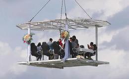 據(jù)聞,“空中餐廳”四周不設(shè)圍欄,享受餐飲服務(wù)的價格為每位8888元。看到“空中餐廳”被起重機(jī)吊著緩緩升空,不少圍觀市民嘖嘖稱奇,紛紛舉起相機(jī)、手機(jī)拍照留念,并感嘆:“這是用生命在吃飯呀!”、“這吃的不是飯,而是刺激......