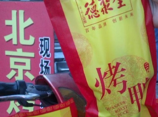 [摘要] 全聚德烤鴨只賣30元?在北京西站附近銷售的“全聚德烤鴨”的流動攤販車上掛著“北京烤鴨25元/只”的牌子,而包裝則是用的“全聚德”的包裝袋。在北京前門全聚德烤鴨店,一只不含配料、包裝和禮盒,重1千克的烤鴨售價為108元。然而,記者暗訪卻發(fā)現(xiàn),幾乎同樣重量的“全聚德烤鴨”在北京西站附近的流動攤販上售價僅為30元。