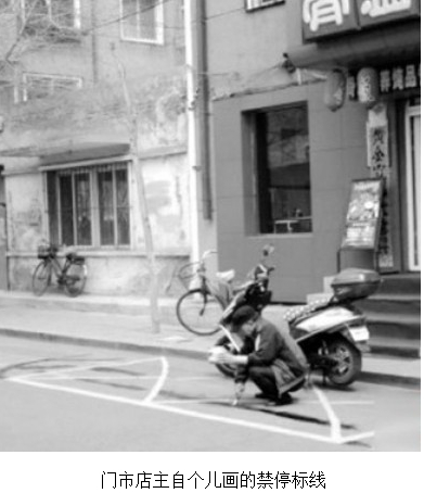 交通標線一般都由交警部門來施畫,不過這個門市店主膽兒可挺大,愣是把店前的停車標線,自個DIY成禁停標線,還挺像那么回事。有的人看到后,覺得挺專業(yè)的,可以以假亂真。不相信,那么你也來看一看啊!