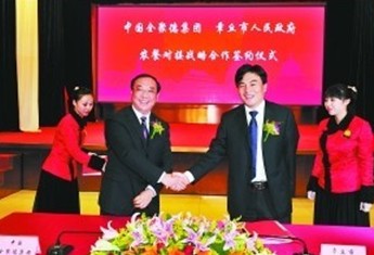 全聚德集團總經(jīng)理邢穎左二與章丘市委副書記、市長劉天東簽署戰(zhàn)略合作協(xié)議