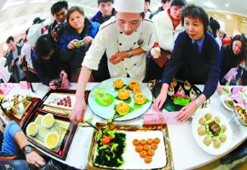 此外,在不斷推陳出新的同時,老字號們還對創(chuàng)新菜的實用性、流行率進行嚴格的追蹤。每月一統(tǒng)計,每半年一排名,不受老百姓歡迎的,即使是花力氣研究出的創(chuàng)新菜,也無法得到獎勵!皠(chuàng)新菜必須抓住消費者的心思!本鄣氯A天技術(shù)總監(jiān)黃建業(yè)說。