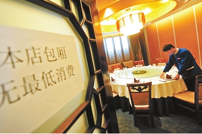 記者探訪發(fā)現(xiàn),一些飯店取消了包間最低消費(fèi),也不限制就餐人數(shù),但是改成了收取服務(wù)費(fèi),某餐館就表示標(biāo)間要收取10%的服務(wù)費(fèi)。