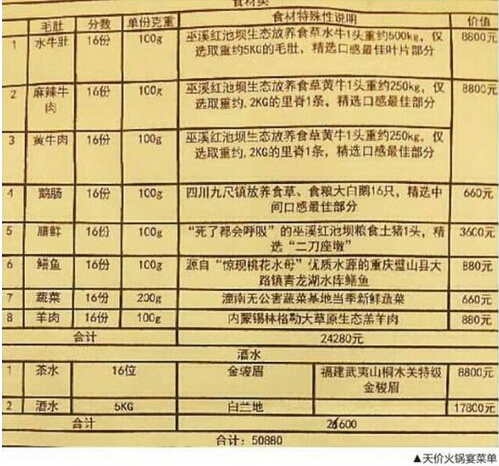 24280元菜金,26600元茶酒錢,一桌火鍋年夜飯總消費(fèi)50880元。你以為有錢就能當(dāng)個(gè)任性的吃貨?大錯(cuò)特錯(cuò)!