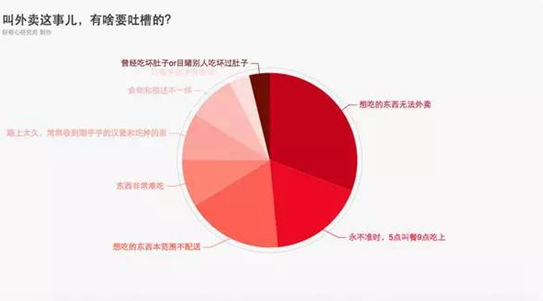 「好奇心研究所」此前做過一次“叫外賣這事兒,有啥要吐槽的?”的投票,我們收獲了共 1871 次表態(tài),結果表明:對外賣實際口味的投訴遠遠少于對幻想中的外賣的憧憬——30.7% 的投票是在抱怨想吃的東西無法外賣;17.7% 在抱怨所在區(qū)域內可選外賣太少,想吃的東西都不在配送范圍內。