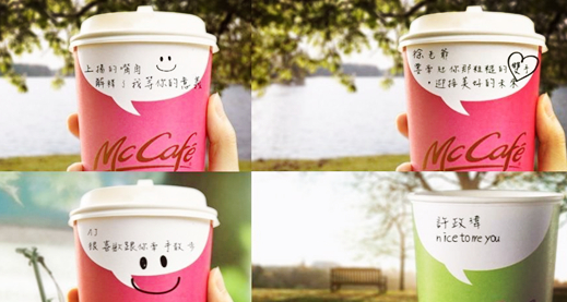 繼2015 年圣誕期間“麥咖啡”大陸店用姜餅人和姜餅味拿鐵引爆朋友圈后,臺(tái)灣地區(qū)的“麥咖啡”于近日推出了一款被譽(yù)為表白神器的“對(duì)話杯”.