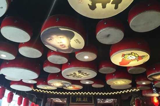 近1000平米的門(mén)臉面積,3層樓高的高度,即使立在簋街也相當(dāng)扎眼。將此門(mén)面化整為零分割區(qū)域,把辣擎火鍋的標(biāo)簽掛出來(lái),“穿越文化老火鍋”“中國(guó)十大麻辣火鍋”“一次性用油老火鍋”。