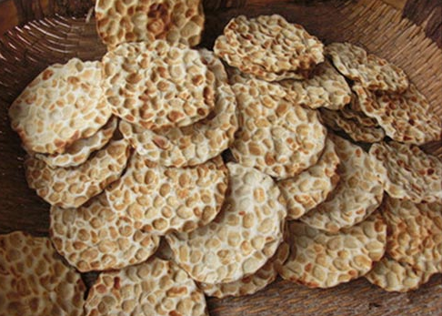 袁枚在《隨園食單》里寫到“天然餅”,謂其渾然天成!敖(jīng)陽(yáng)張荷塘明府,家制天然餅,用上白飛面,加微糖及脂油為酥,隨意捐成餅樣,如碗大,不拘方圓,厚二分許。用潔凈小鵝子石,襯而漠之,隨其自為凹凸,色半黃便起,松美異常。或用鹽亦可”。清代石子饃傳到長(zhǎng)江流域,也深受社會(huì)各階層的喜愛(ài)。