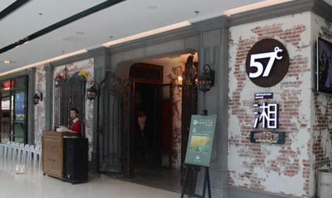 望湘園的整體色調(diào)是以黑紅為主的復(fù)古風(fēng),57度湘則是原木質(zhì)地的文藝風(fēng)格。先看看這兩家的門頭顏值PK。