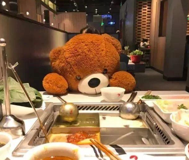 再打個(gè)比方,“熊熊”既然能在海底撈里陪單身狗吃飯,那么,是不是可以考慮,把“熊熊”作為一種周邊商品賣給消費(fèi)者呢?海底撈的熊熊,一只不說(shuō)話只傻傻地看著你吃的熊熊,一只陪你到天明的熊熊,一只不離不棄的熊熊……