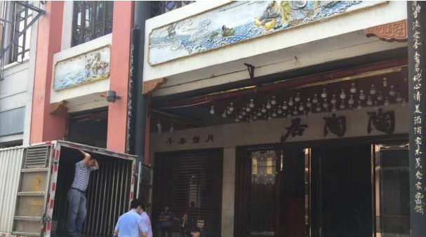 9時(shí)30分許,一輛小貨車開到陶陶居店門前,店員開始把店內(nèi)打包好的設(shè)備搬上車。